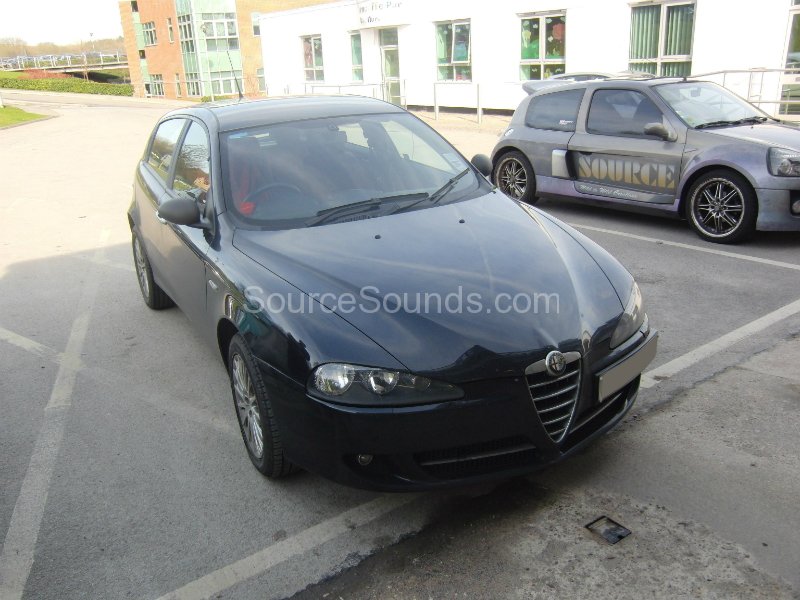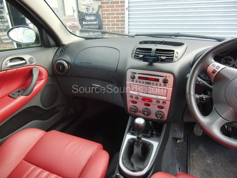 A stylish Alfa Romeo 147 upgraded with a discreet Bluetooth phone kit installation. The system integrates neatly with the factory stereo, providing seamless hands-free calling while maintaining the original dashboard appearance.