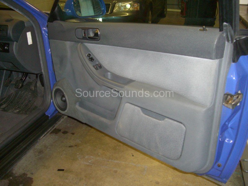 This 2003 Audi A3 has 5.25″ speakers in the original location and we replaced these with a 6.50″ component kit.  We made a simple pod which attached to the front of the door card, as opposed to completely re-making the door, which we trimmed in alcantara.