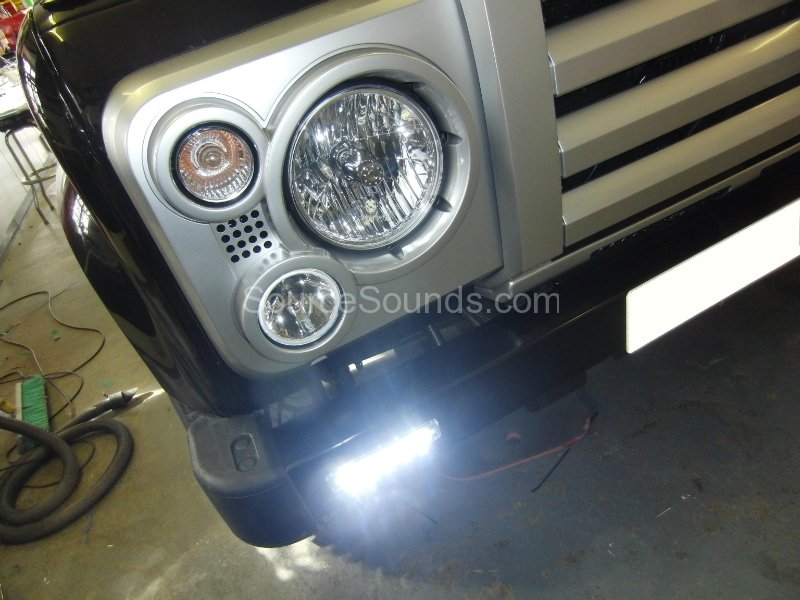 A complete overhaul of the front lighting system with the addition of DRL’s.  We also installed an upgraded Alpine cd tuner with iPod connection, a portable navigation system with TV tuner and reverse camera connected to it and a DVD roof monitor.