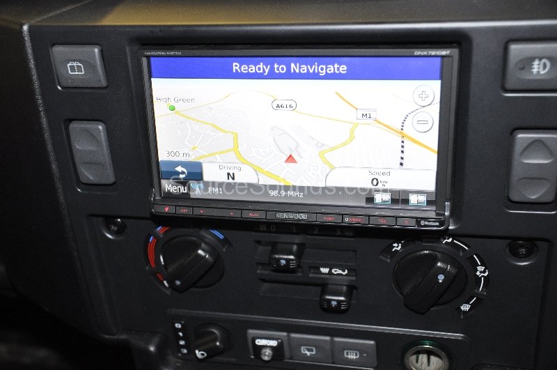 The installation of a new dashboard kit to allow a double DIN screen to be fitted into the dashboard of a Landrover Defender.  Into this facia we fitted a Kenwood DNX 7210BT double DIN touchscreen navigation system, giving Radio, CD, DVD, Bluetooth, iPod and European Navigation all controlled via a 7″ touch panel.  Later upgrades could consist of a reverse camera.