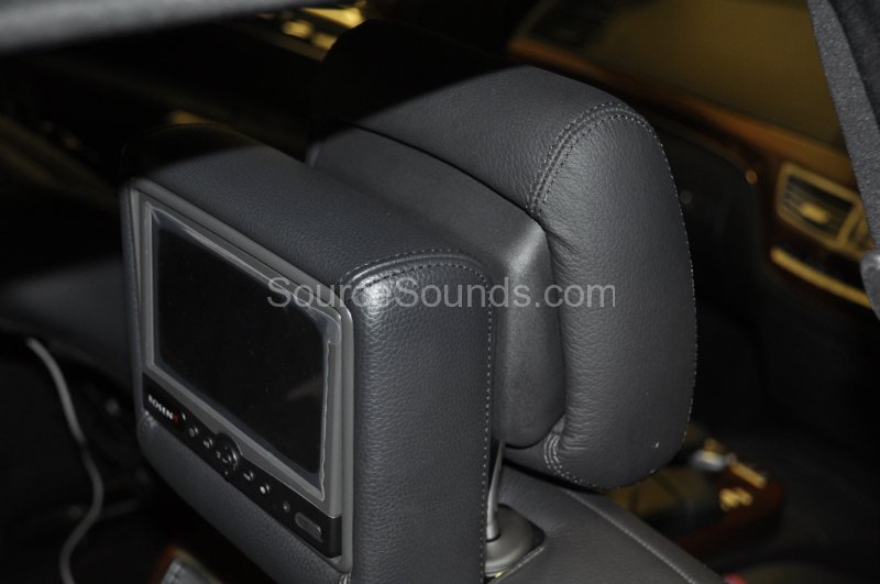 The fitting of Rosen vehicle specific rear monitors where you can’t change or trim the original active headrests. The material and stitching match the vehicle interior perfectly and each monitor has a built in DVD player.
