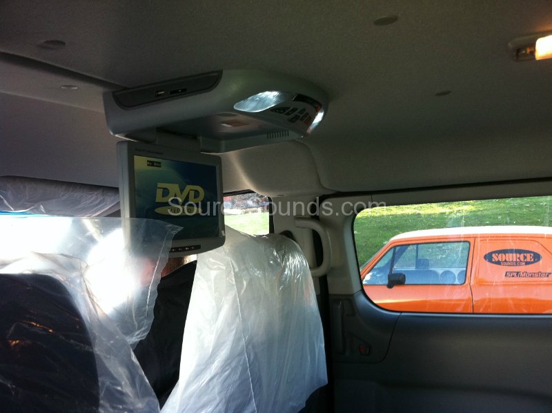 Fitting of a DVD roof monitor, audio comes via FM modulator through OEM radio and speakers or through wireless IR headphones.