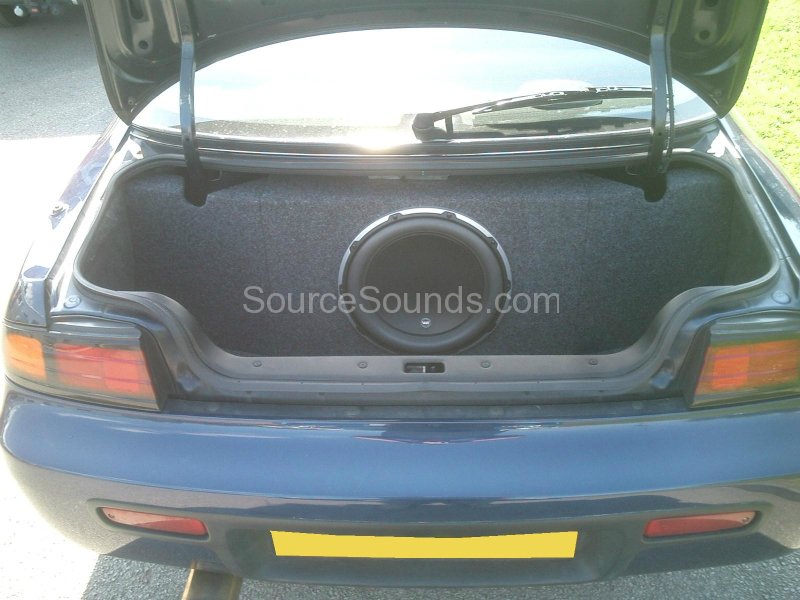 Custom boot installation of two Genesis Series III amplifiers, one for the JL Audio 12w6v2 subwoofer and the other for the front component speakers. Linked to the front screen which is a Kenwood double DIN touch screen DVD system.
