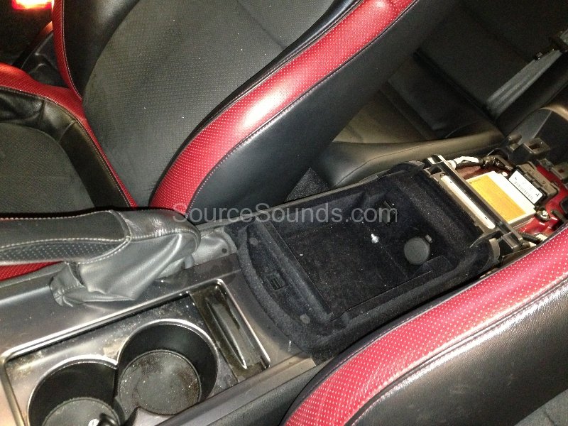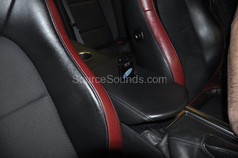 We stripped the armrest down and custom built a dock for his iPhone5 into the top of the armrest. He can now see the screen of the phone and also passengers in the rear can change the music as well.
