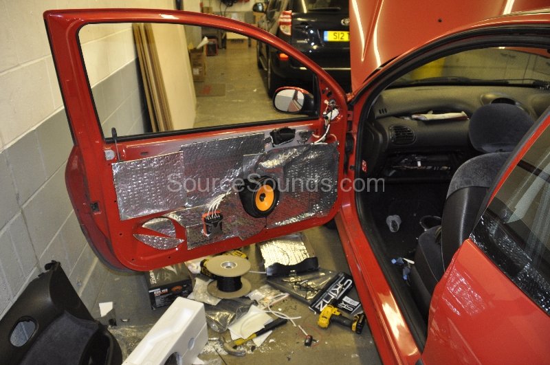 Not always considered, sound proofing is sometimes one of the cheapest ways to enhance the sound of a vehicle.  On this 206 we deadened the door panels, rear quarter panels and placed some on the floor under the carpet.  This will help to reduce road noise entering the cabin thus giving a better, louder sound at low volumes.