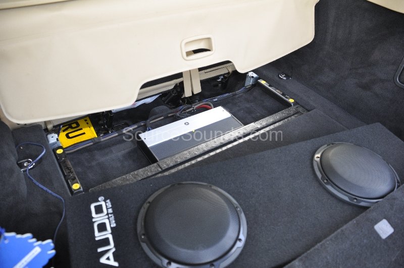 The customer of this Range Rover felt the system was lacking sub bass and power to the factory speakers. We supplied and installed a JL Audio XD700/5 5 channel amplifier, hidden under the boot floor. This was to drive the factory front and rear speakers and we supplied a JL Audio twin 8″ w3 sub enclosure that was placed in the boot across the rear floor.