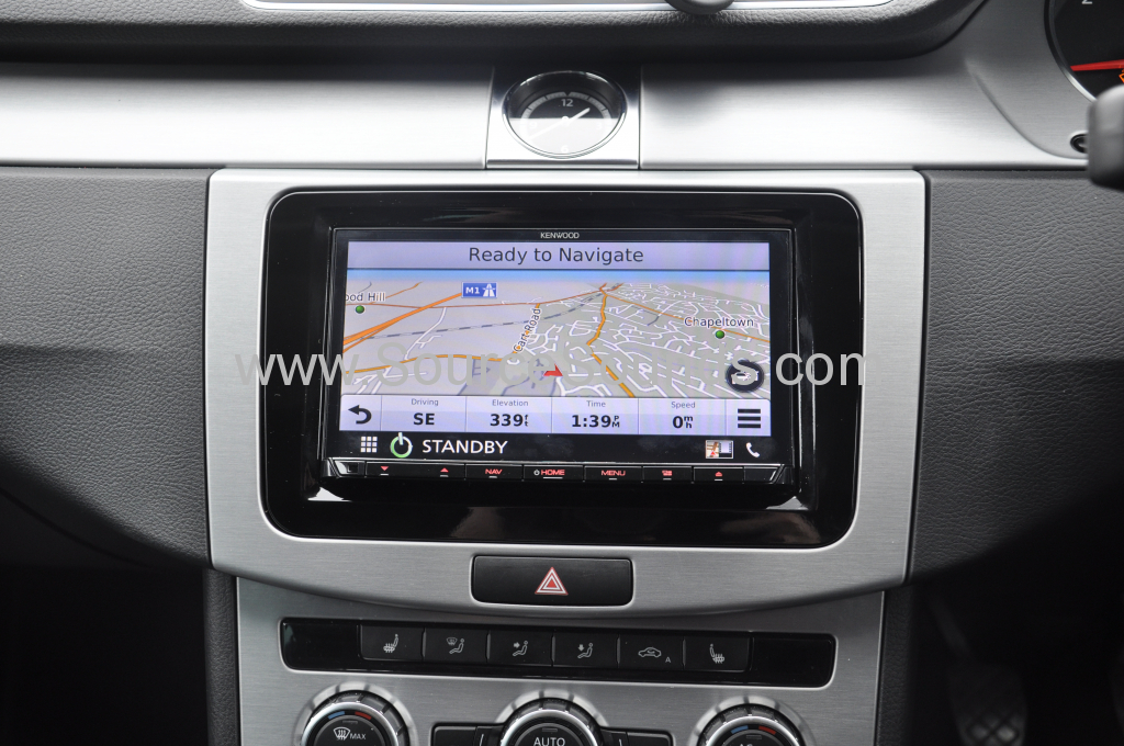 The supply and install of a 2012 VW Passat navigation upgrade. The customer chose a Kenwood DNX08170DABS touch screen system. This boasts a 7″ capacitive touch panel for full control. Main features of this unit are Navigation, CD, DVD, Bluetooth and USB connections. Also available to the driver are Apple Car Play and Android Auto features. The vehicle has factory fit parking sensors that display information on the factory screen. We were able to retain this information with the Kenwood screen system.